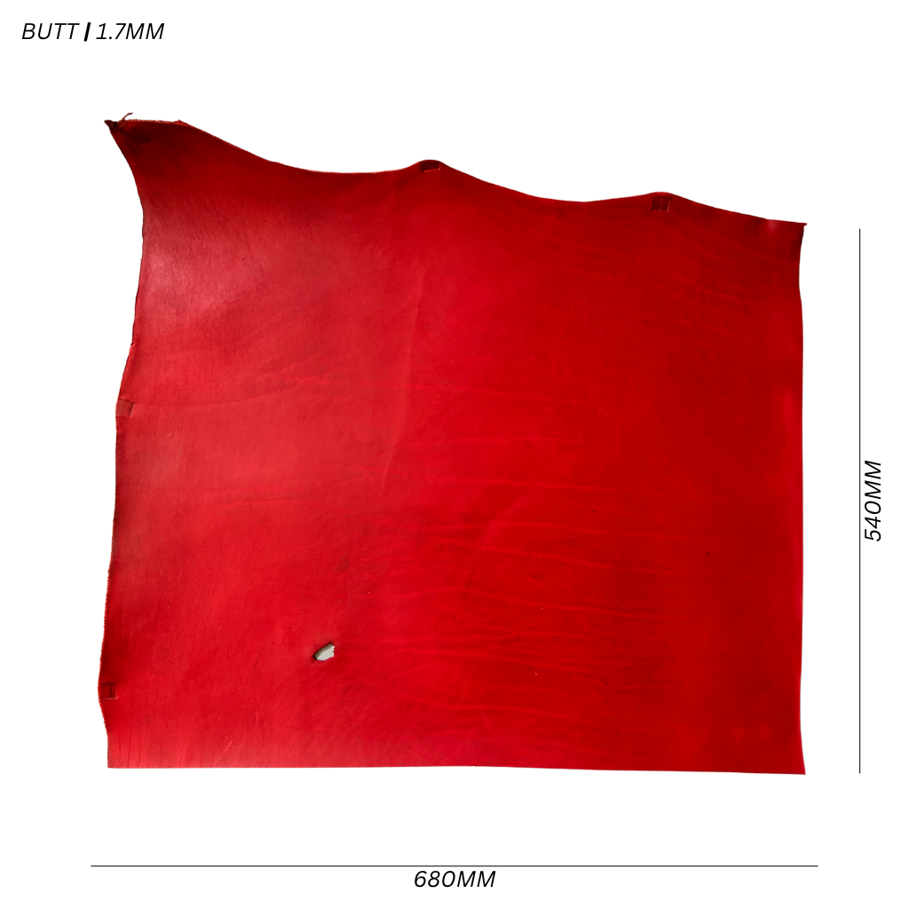 Full grain, natural vegetable tanned leather with a medium temper. These leather pieces have some marks, scratches, brandmarks and/or discolouration and is therefore listed at a discounted price.